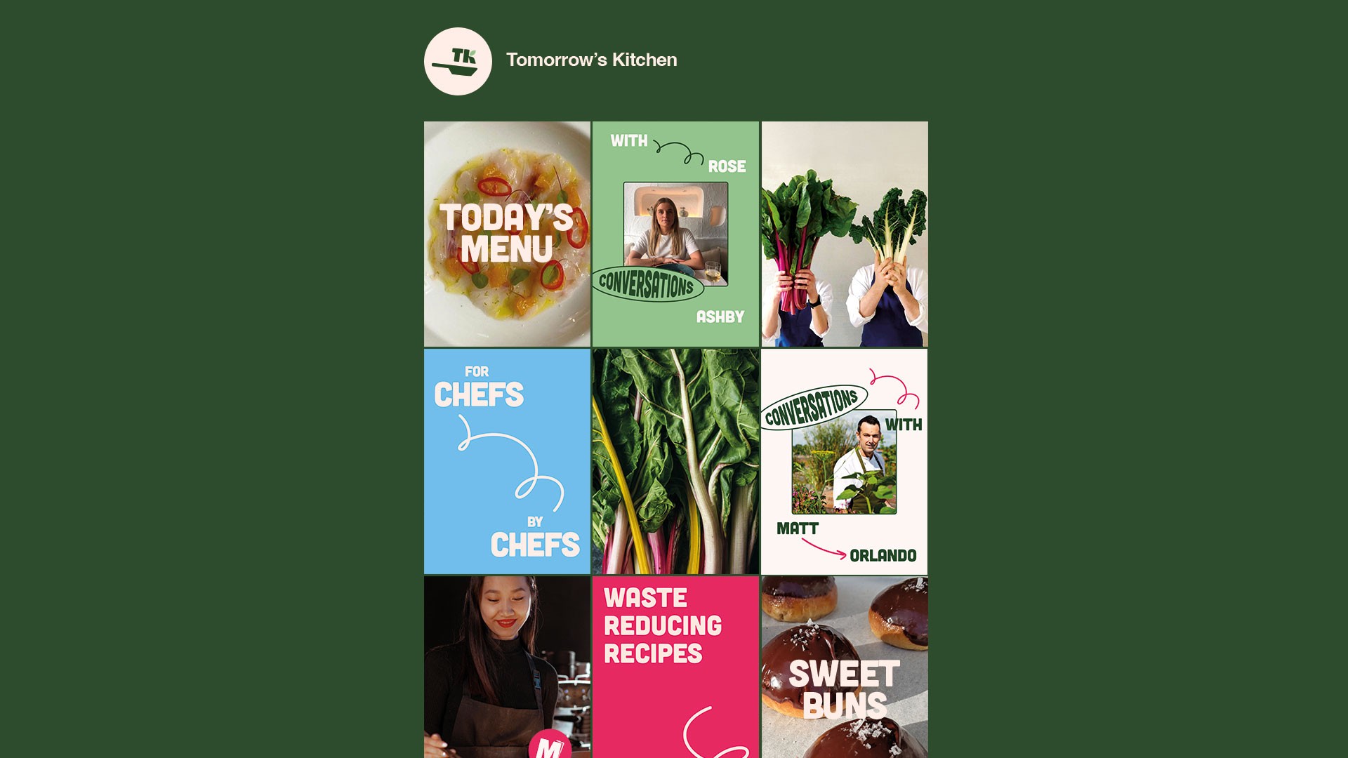 Brand identity for Tomorrow's Kitchen CIC, an eco-solution led platform changing the restaurant industry for the better.